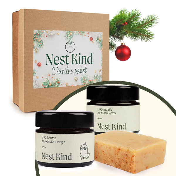 Otroški paket Nest Kind je zasnovan posebej za najmlajše, saj združuje najboljše iz narave in je namenjen nežni otroški koži. Izdelki v paketu so 100 % ekološki, naravni, ročno izdelani in ustvarjeni z ljubeznijo ter spoštovanjem do narave in vašega otroka. Naša filozofija temelji na preprostosti, varnosti in učinkovitosti, brez kompromisov pri kakovosti.